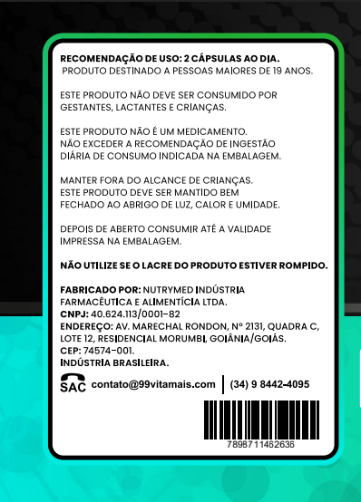 MODO SE USO: TOMAR 2 CÁPSULAS AO DIA, SEMPRE DE NOITE ANTES DE DORMIR